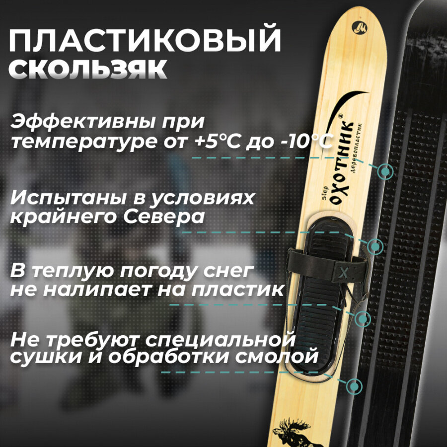 Лыжи охотничьи пластиковые Маяк охотник 165 х 15 см с полужестким креплением (дерево-пластик) 8 770 ₽