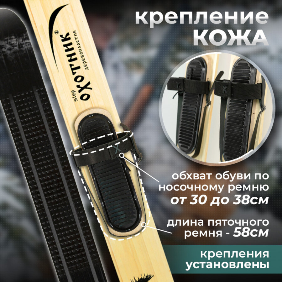 Лыжи охотничьи деревянные Маяк Лесные 175 х 11 см с креплением кожа с пяткой