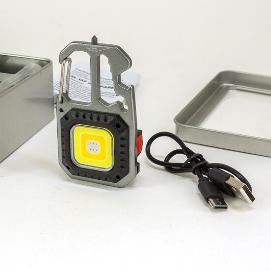 Фонарь-мультитул яркий ЛУЧ KM-143 Муравей COB-брелок max400лм +red, 2 биты, акк.400mAh