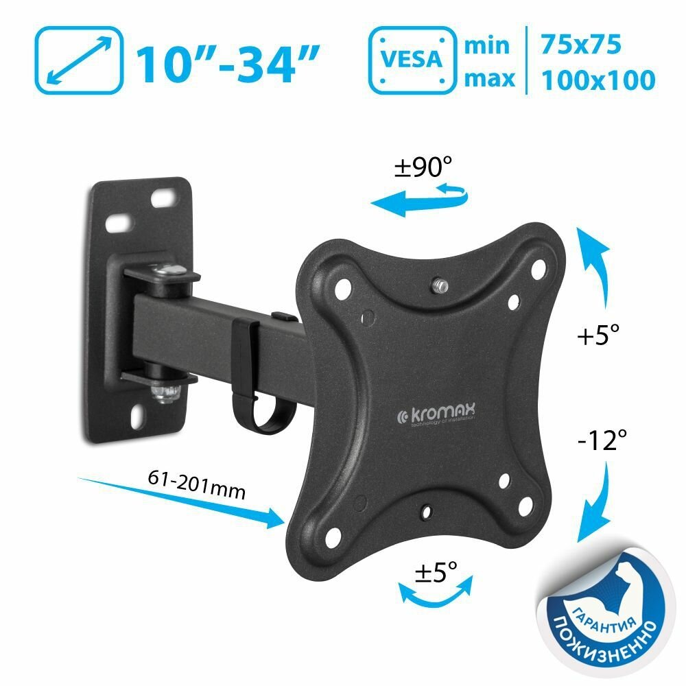Кронштейн для телевизора на стену / крепление наклонно-поворотное KROMAX CORBEL-2 / до 34 дюймов / vesa 100x100 990 ₽