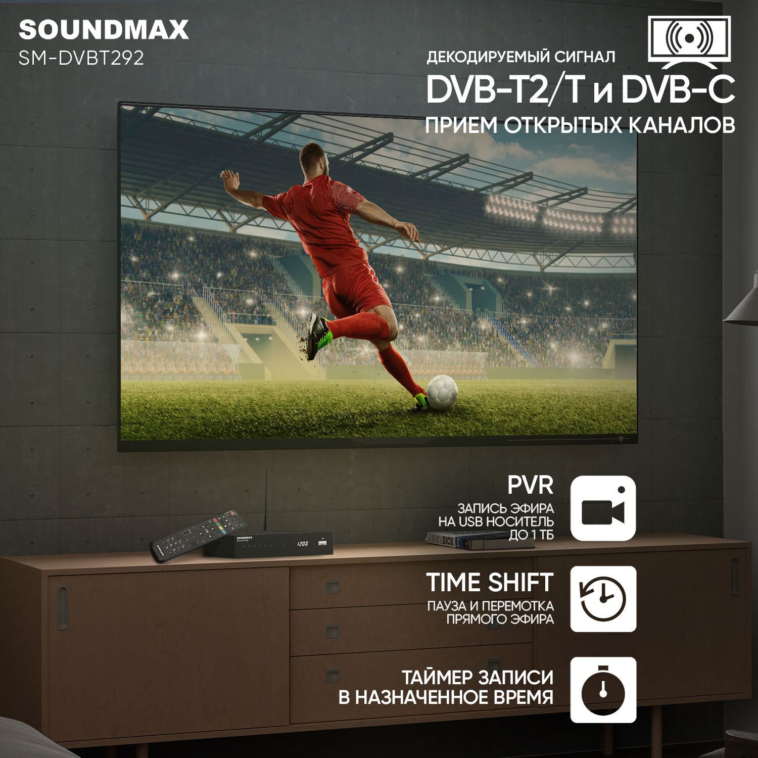 Плеер Медиа ТВ SOUNDMAX DVBT292 информация: