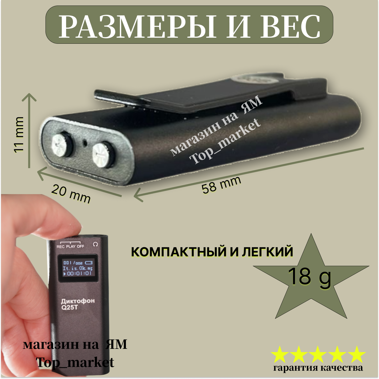 Диктофон SPEC Q25 со встроенной памятью 8 GB, с дисплеем и датчиком звука, непрерывная запись до 25 ч информация: