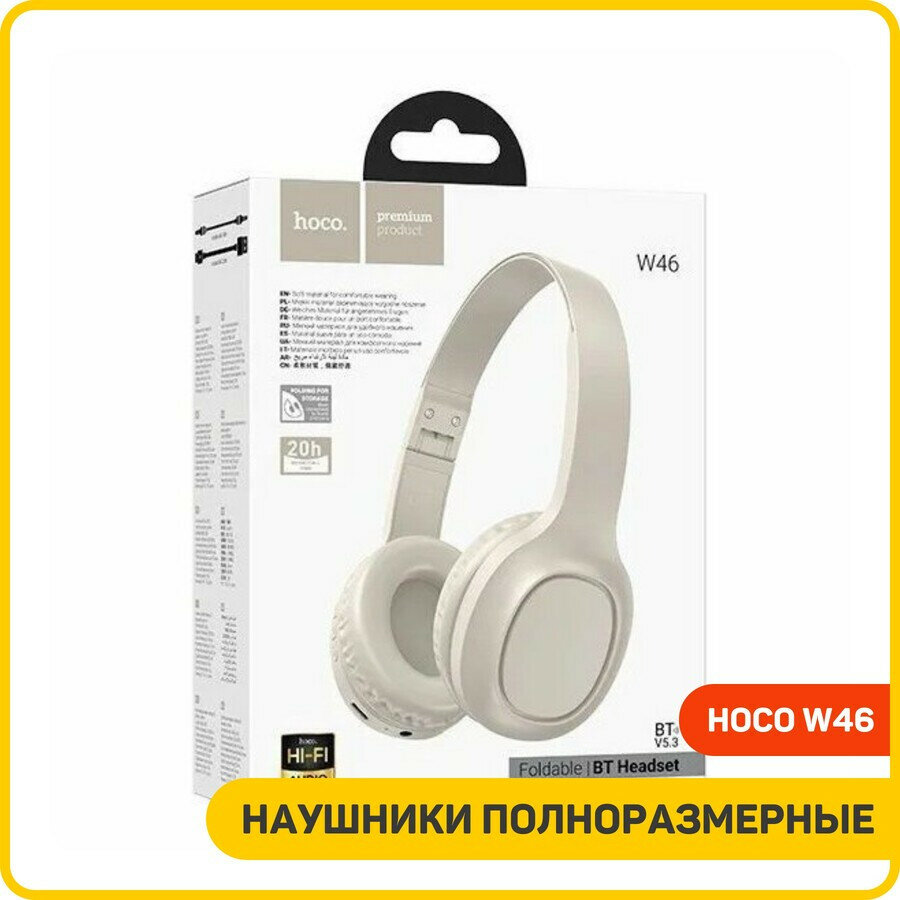 Наушники полноразмерные беспроводные Hoco W46 (Bluetooth) бежевый информация: