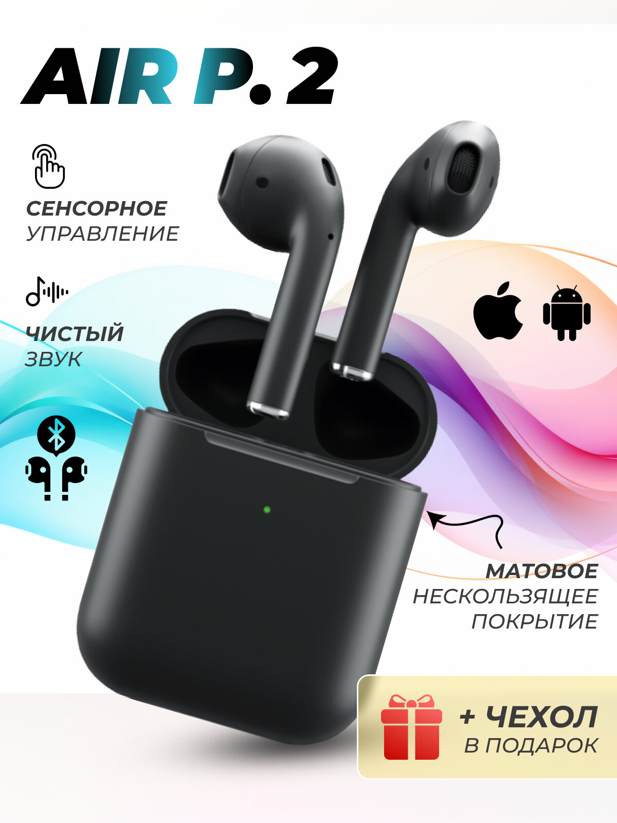 Наушники беспроводные AIR P. 2, PREMIUM Bluetooth, для айфона, для телефона, для ПК с микрофоном, для iPhone, Android, черные 1 399 ₽