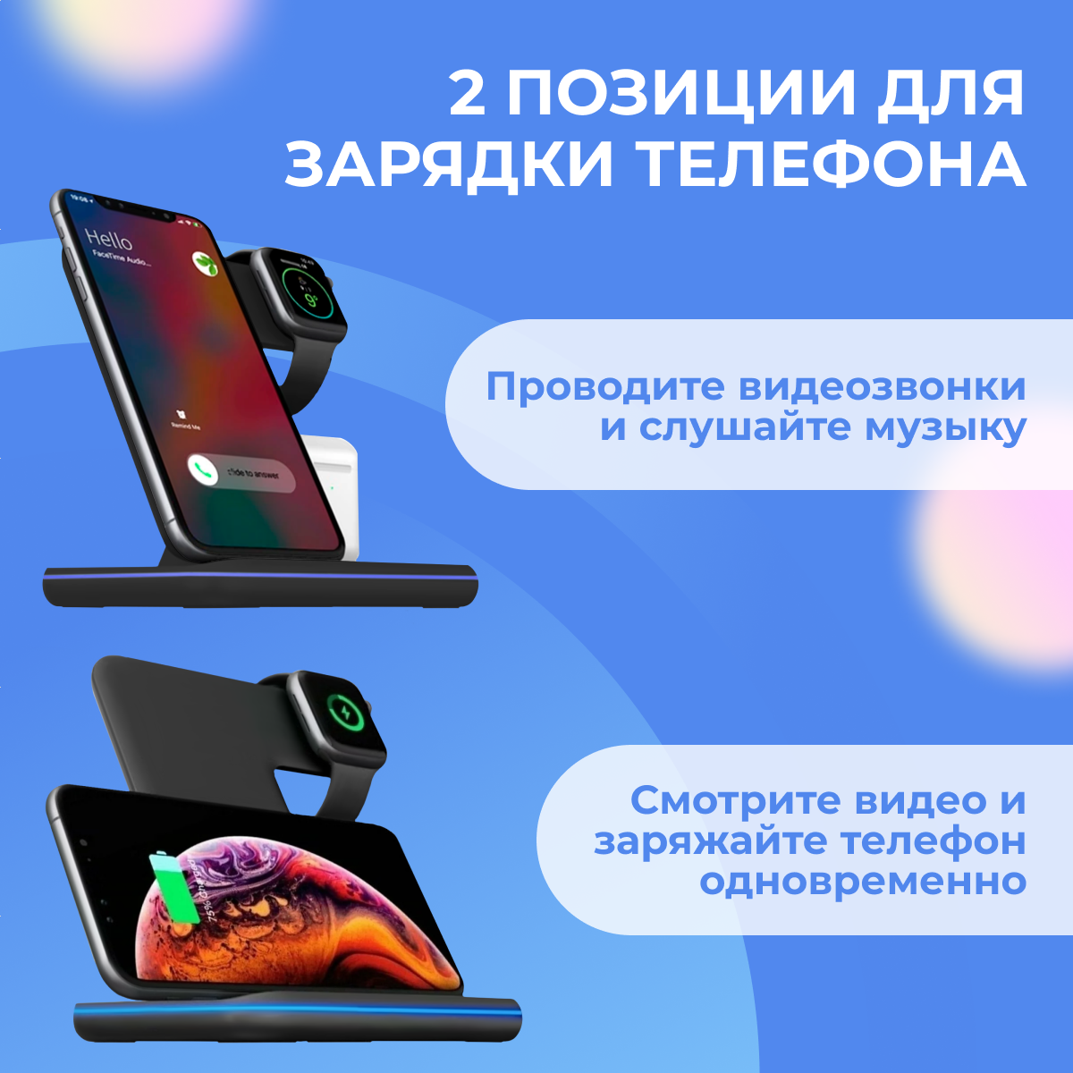 Беспроводная зарядка док-станция 3 в 1 для Apple iPhone, AirPods, Apple Watch, Samsung, Huawei, Xiaomi, Tecno, Vivo 2 899 ₽