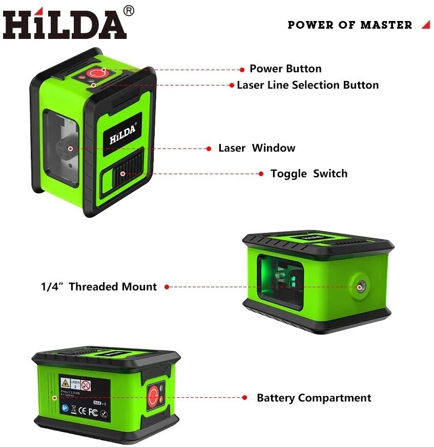 Лазерный уровень Hilda с 2 зелеными лучами и автоматическим выравниванием информация: