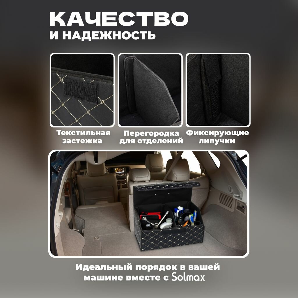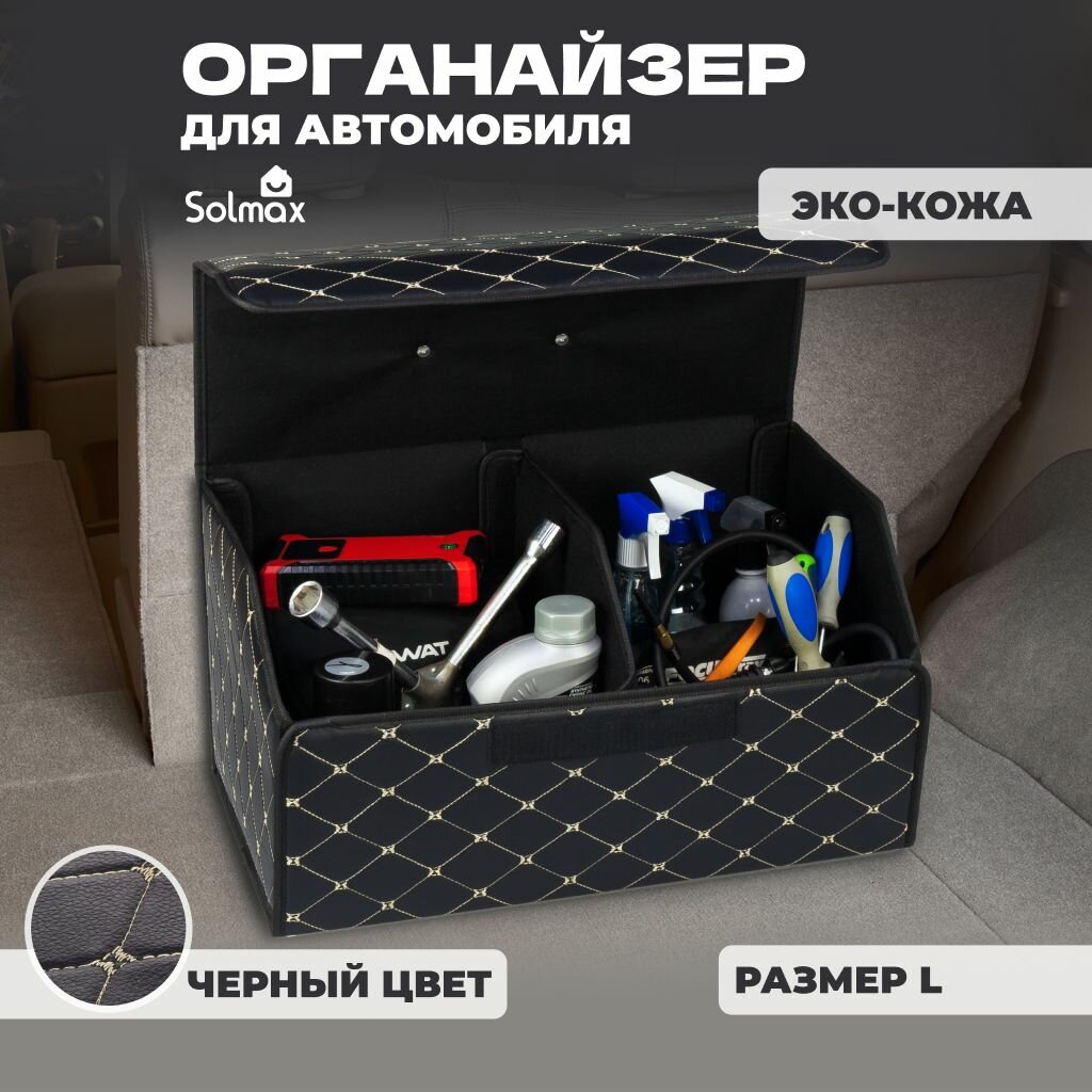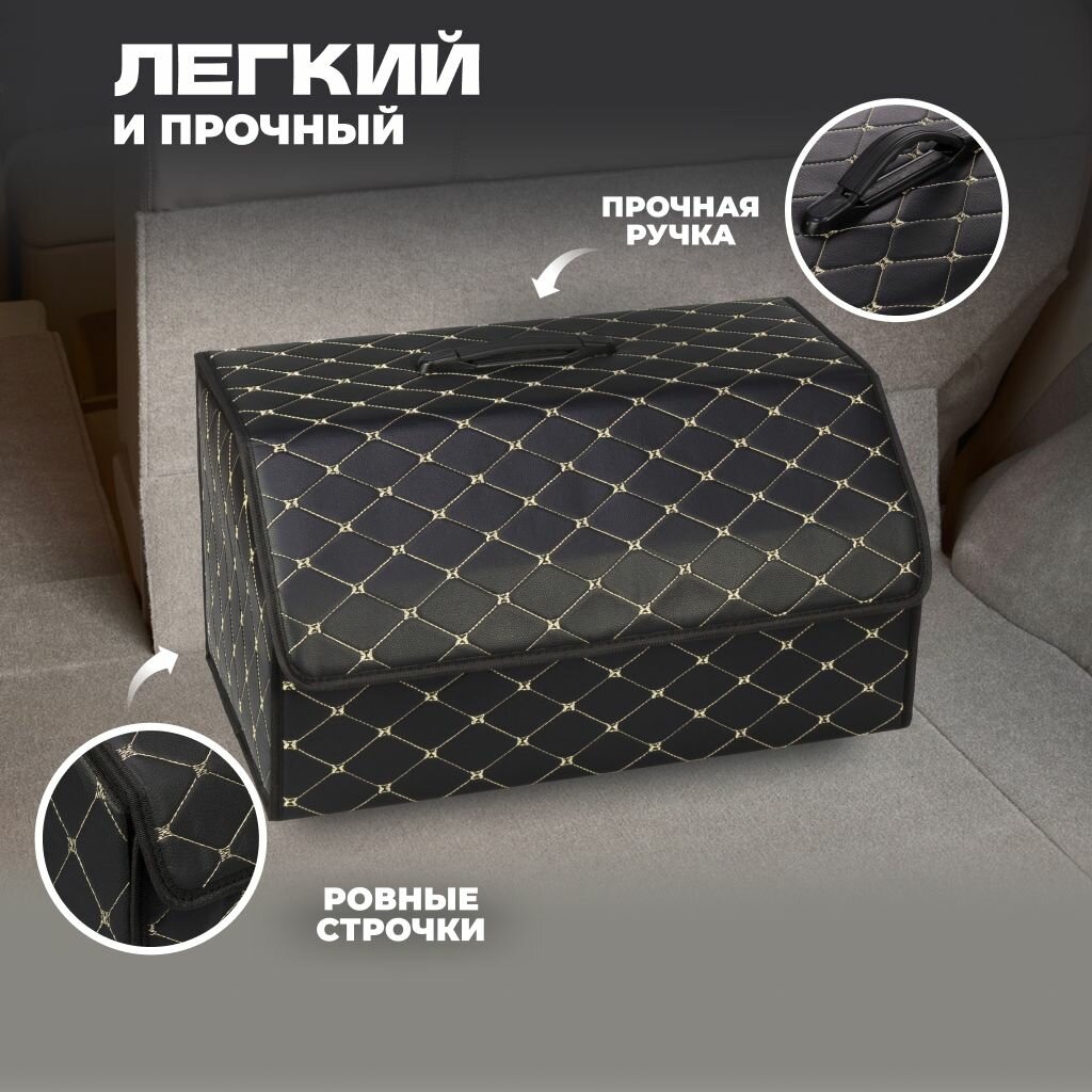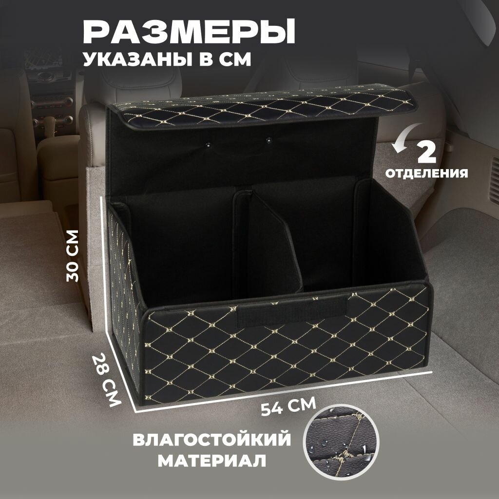 Отзывы на Органайзер (кофр) в багажник автомобиля, эко-кожа (полиуретан) + полиэстер. Размеры: 54х32х30 см, черный