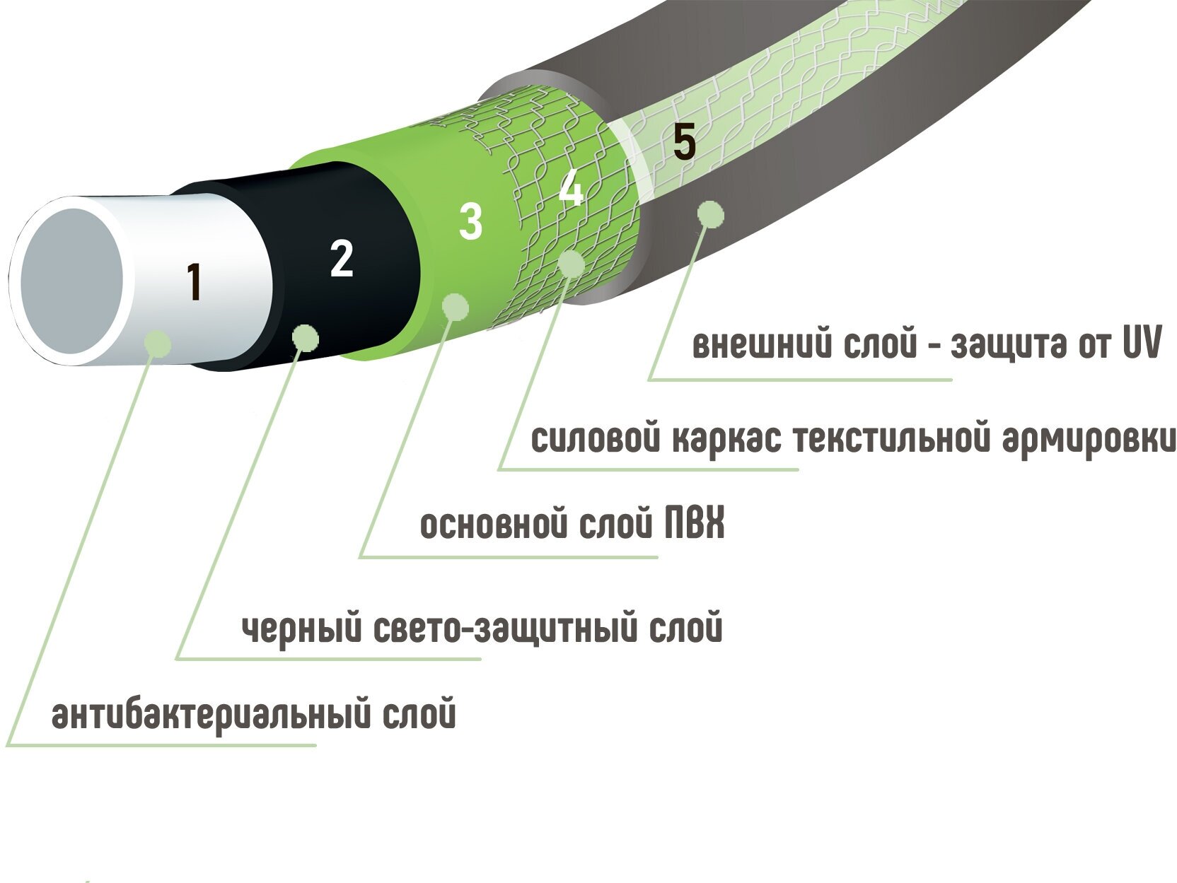 Премиум шланг для полива пищевых продуктов "Исток", 1 дюйм, 50 метров, 5 слоев информация: