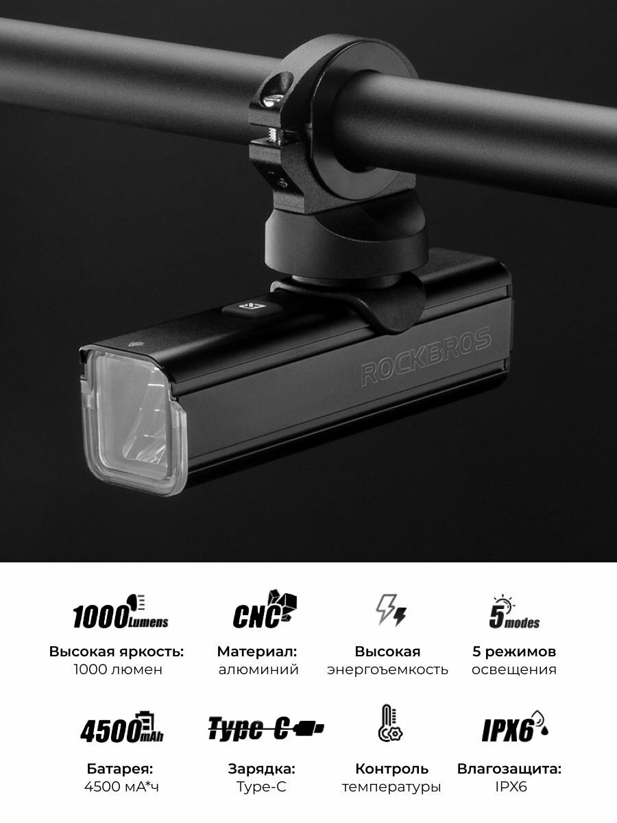 Фонарь велосипедный передний / велофонарь Rockbros RHL400