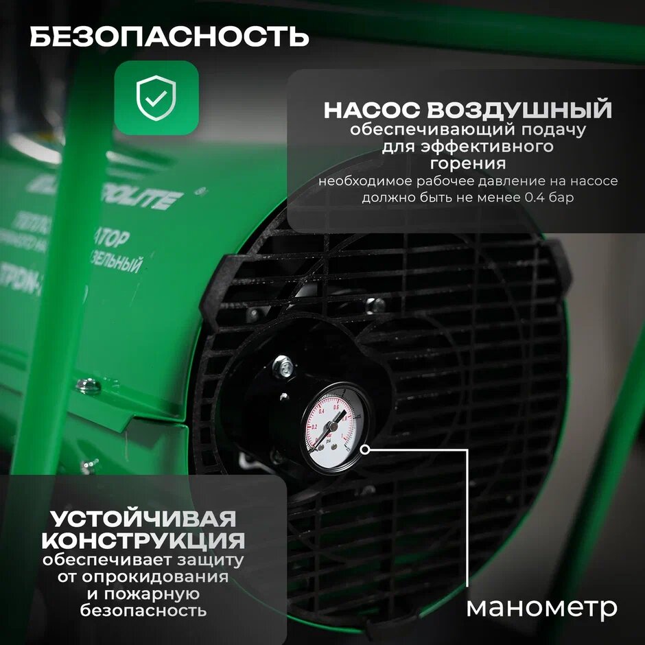 | Дополнительная информация | время работы на 1 баке: 21ч; тип топлива: керосин/дизель; датчик уровня топлива; дымоотвод |
