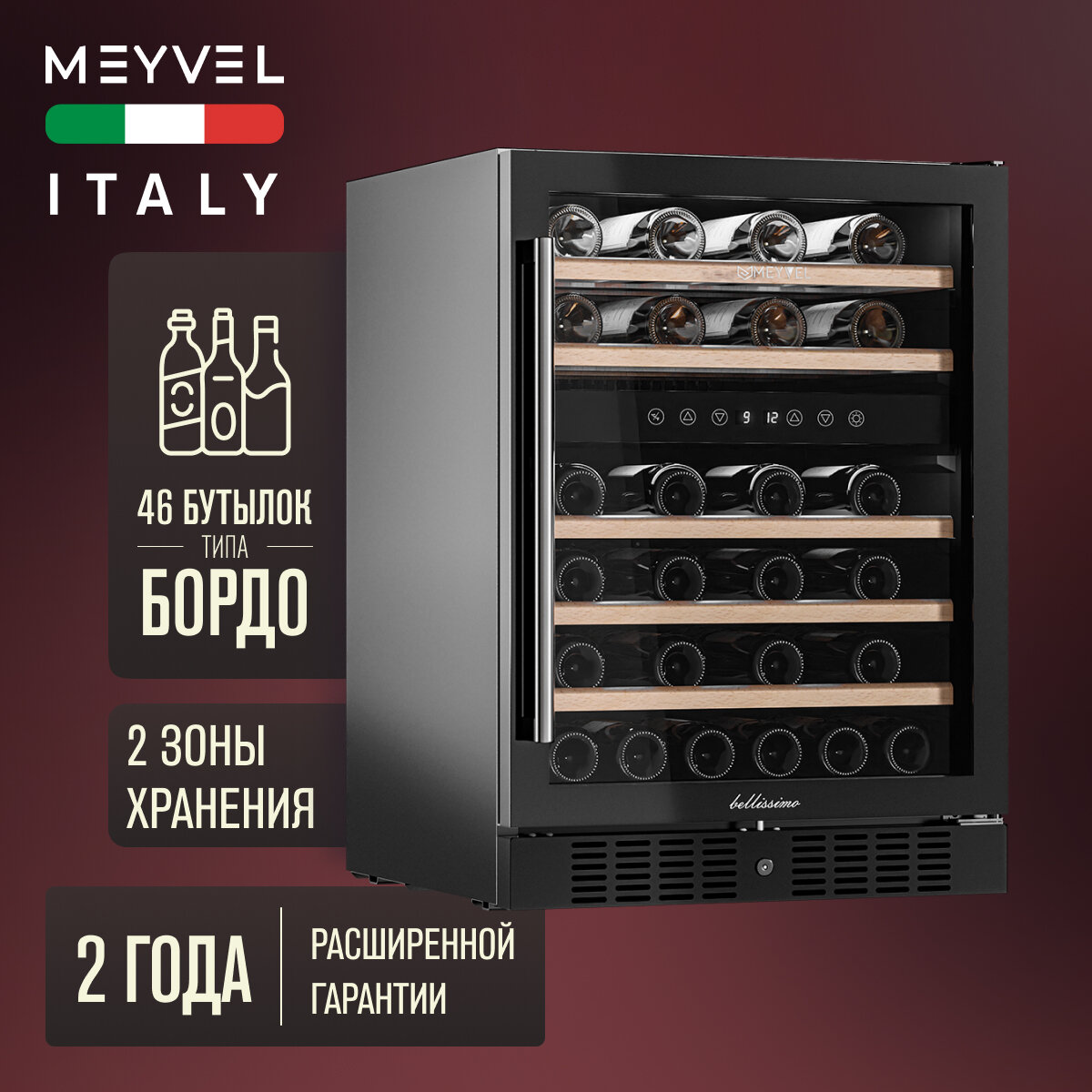 Винный холодильный шкаф Meyvel MV46-KBT2 компрессорный (встраиваемый / отдельностоящий холодильник для вина на 46 бутылок) информация:
