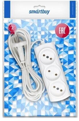 Удлинитель SmartBuy SBE-10-3-02-N, 3 розетки, 2 м, б/з, 10А / 2200 Вт