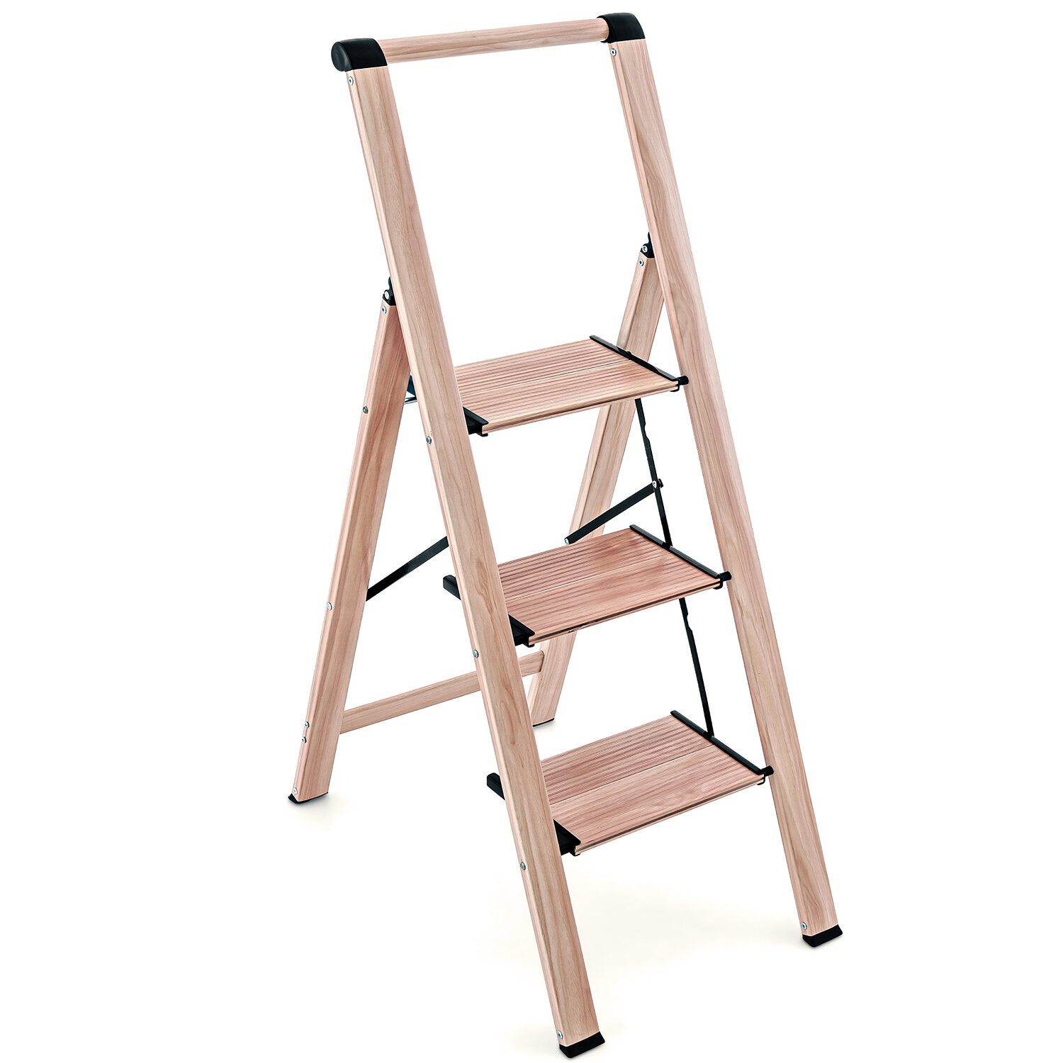 Стремянка из алюминия с тремя ступенями Tatkraft Up, дизайн под дерево, 44x63x112 см