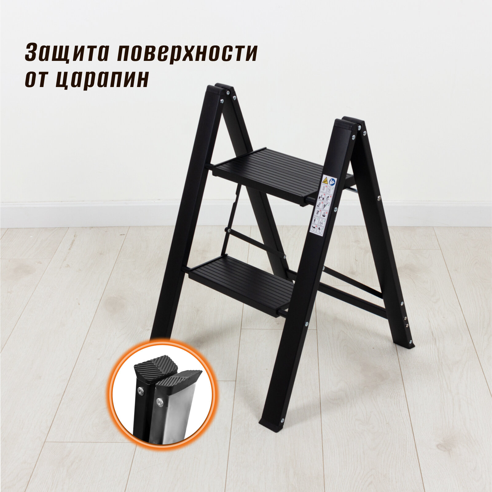 Стремянка "Joy Home" 2-х ступенчатая черная алюминий, пластик информация: