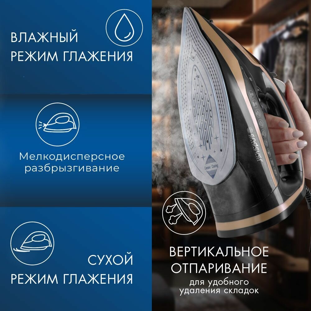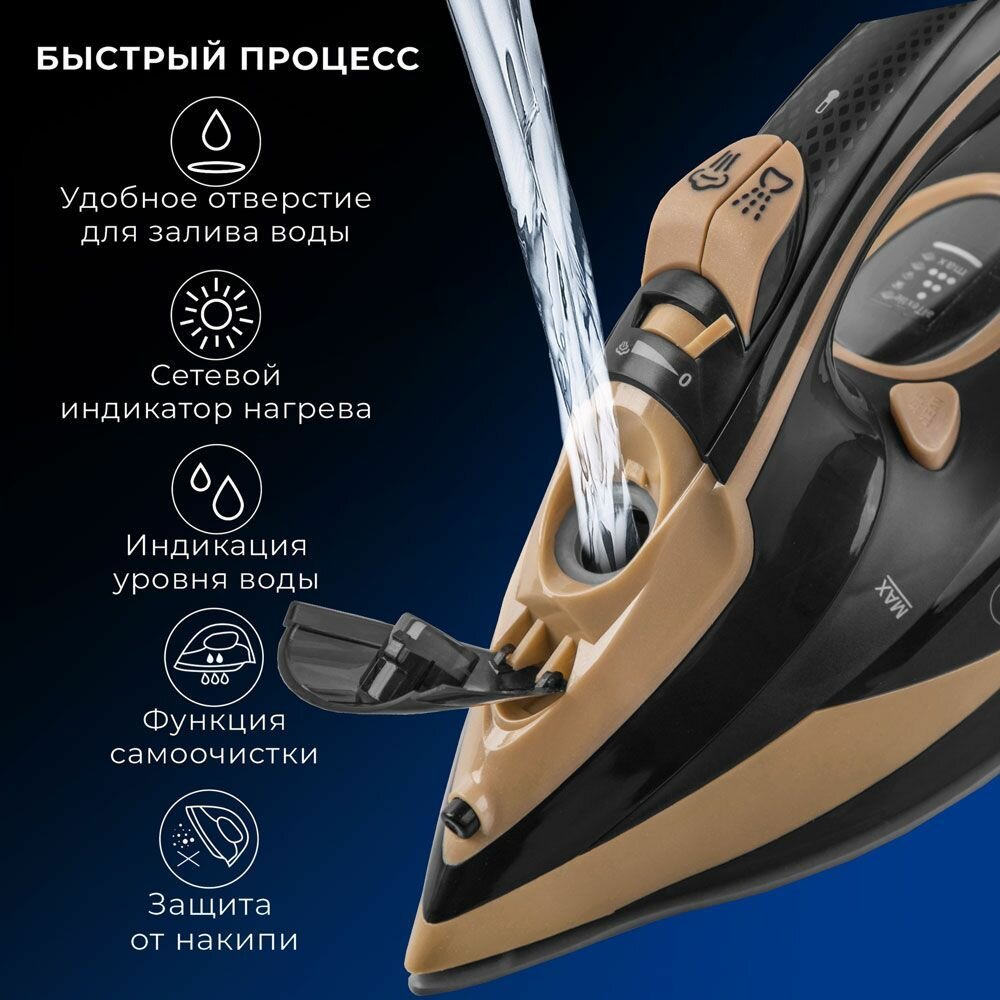 Утюг с отпаривателем Endever Delta-226, 2400 Вт, автоотключением и сенсорным управлением, защита от накипи информация: