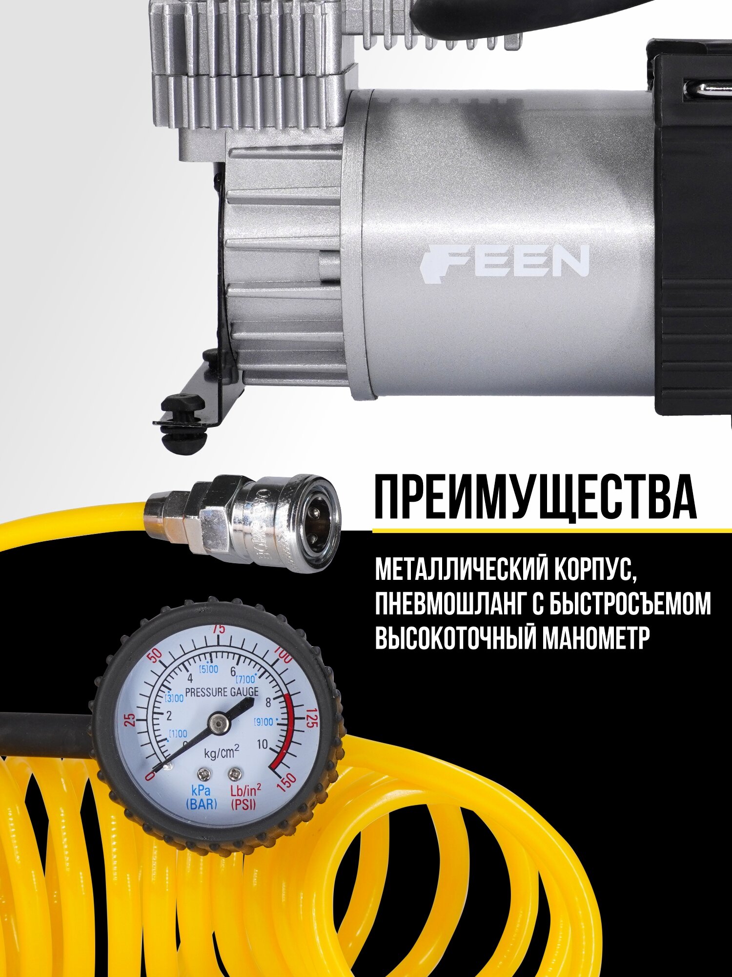Компрессор автомобильный FEEN воздушный, насос в машину от аккумулятора, 60 л/мин информация: