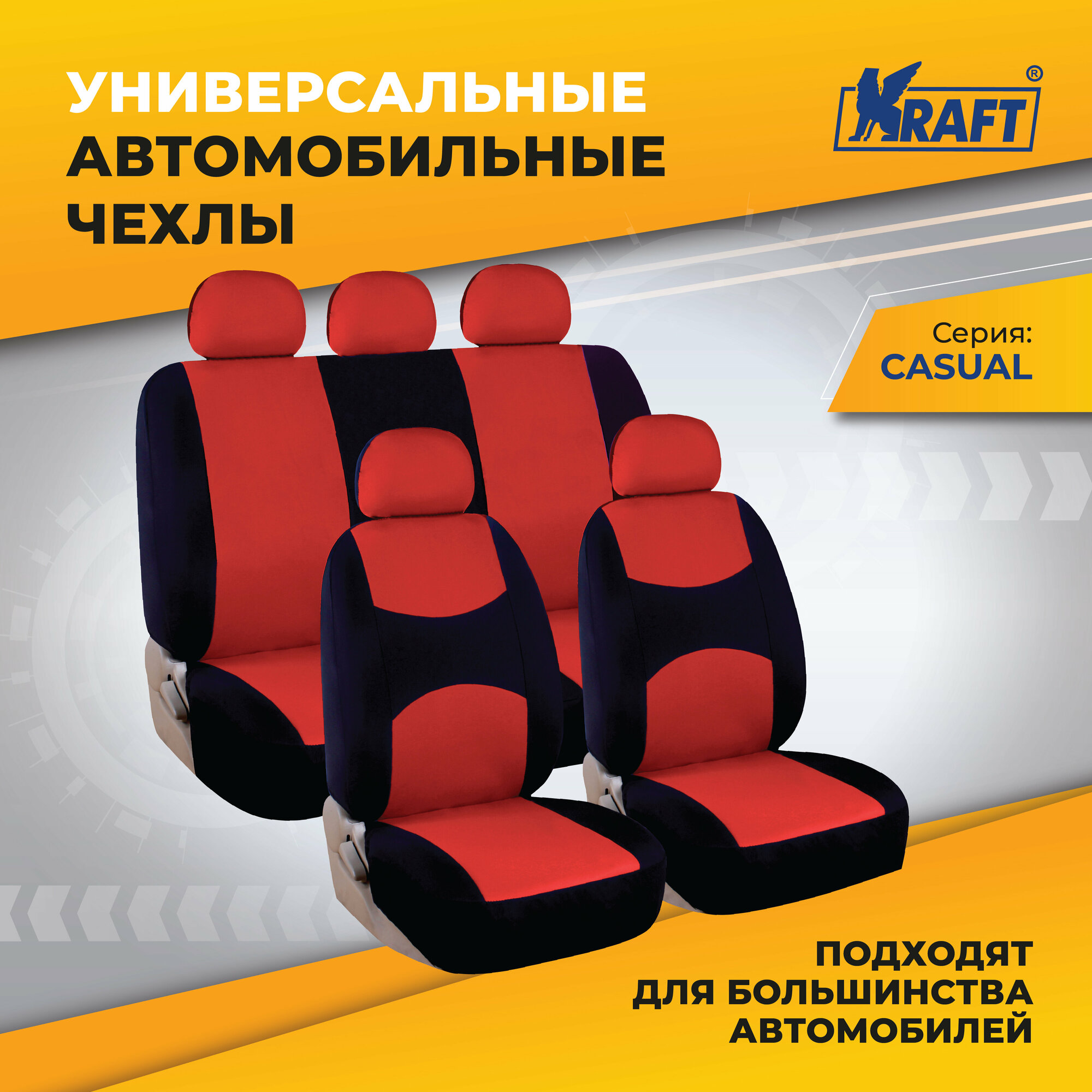 Чехлы универсальные на автомобильные сиденья, комплект CASUAL, полиэстер, черно-красные KRAFT KT835610 Kraft арт. KT835610