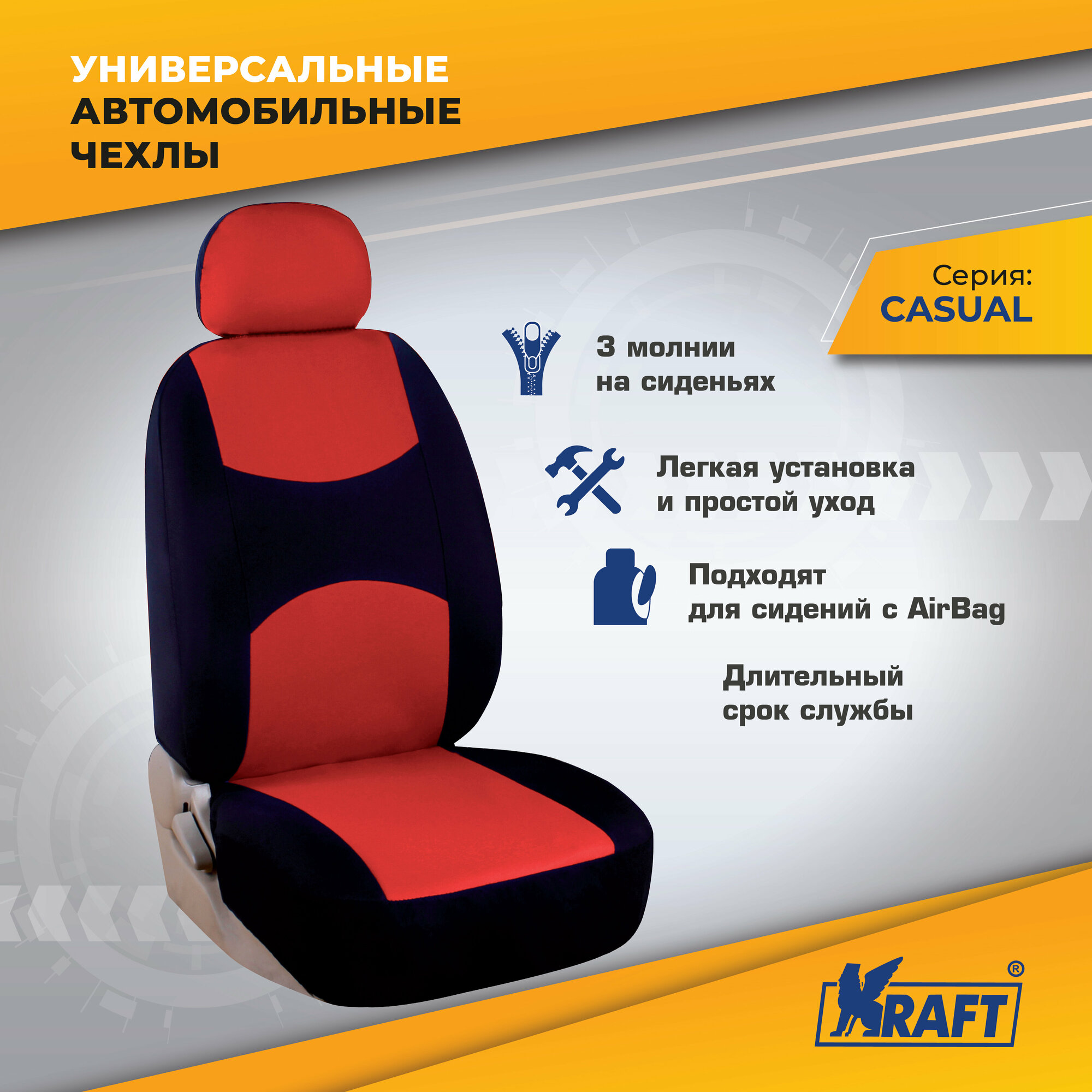 10 цен на Чехлы универсальные на автомобильные сиденья,комплект CASUAL, полиэстер, черно-красные KRAFT Kraft KT835610