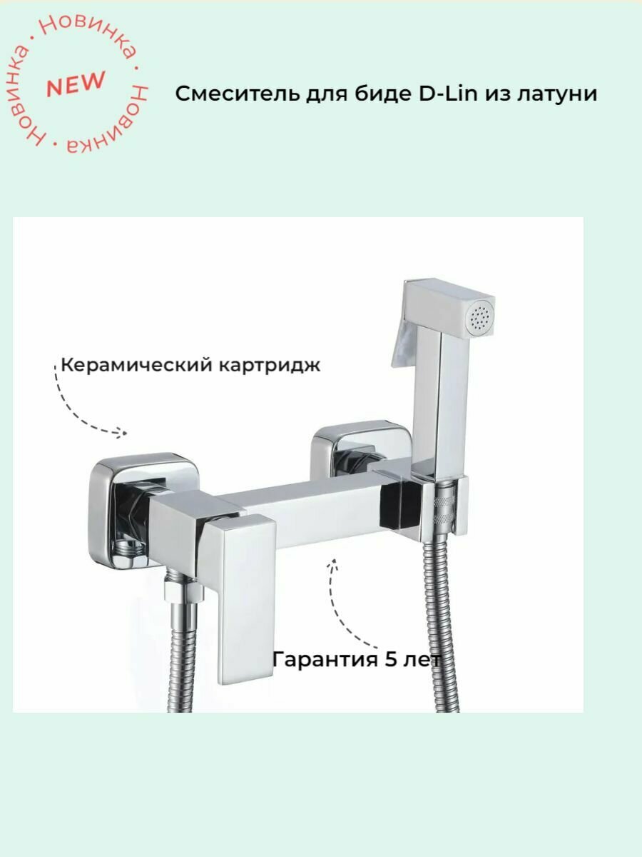 Смеситель с гигиеническим душем, лейкой, настенный D-LIN D180201 хромированный, латунь. информация: