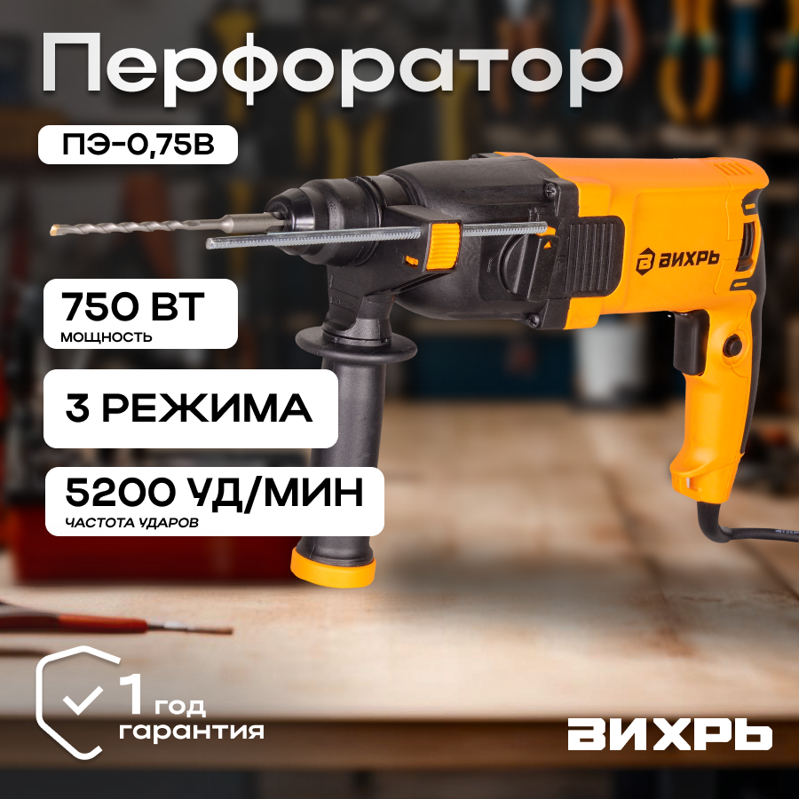 Отзывы на Перфоратор электрический Вихрь ПЭ-0,75В, 750 Вт, 2 Дж, 3 режима, патрон SDS-Plus