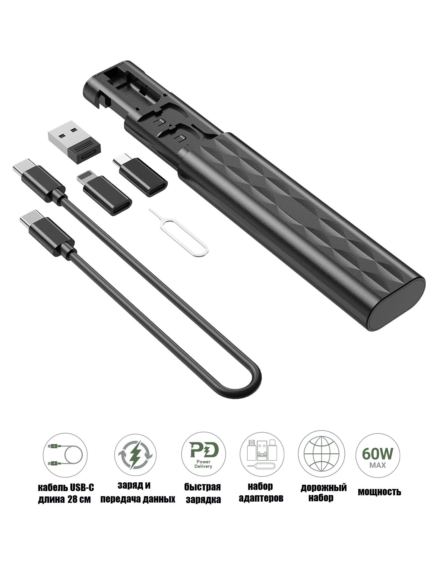 Кабель USB-C 60 Вт + адаптеры 7 в 1 дорожный набор информация: