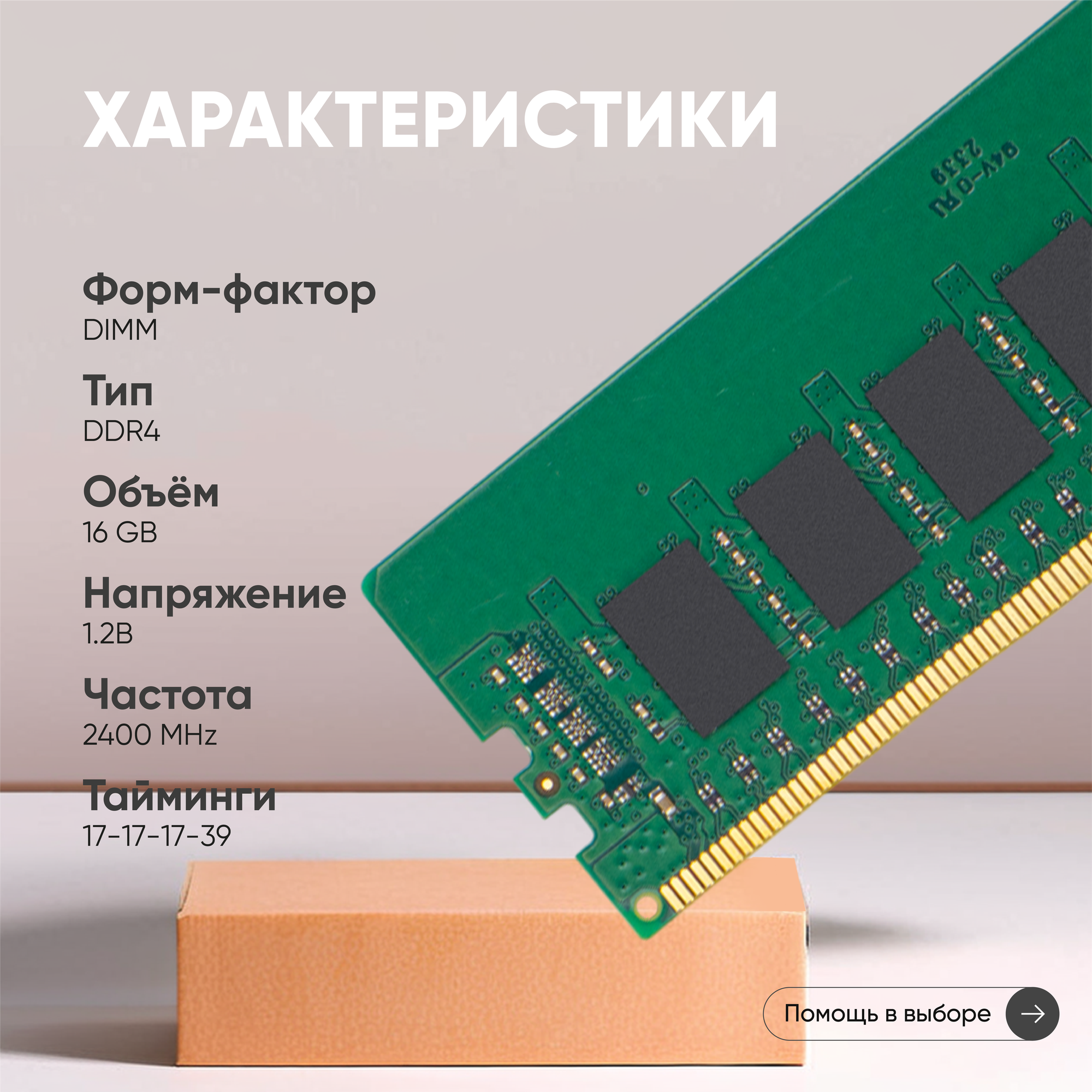 Модуль памяти Samsung DIMM DDR4, 16ГБ, 2400МГц, PC4-19200, CL17 17-17-17-39 информация: