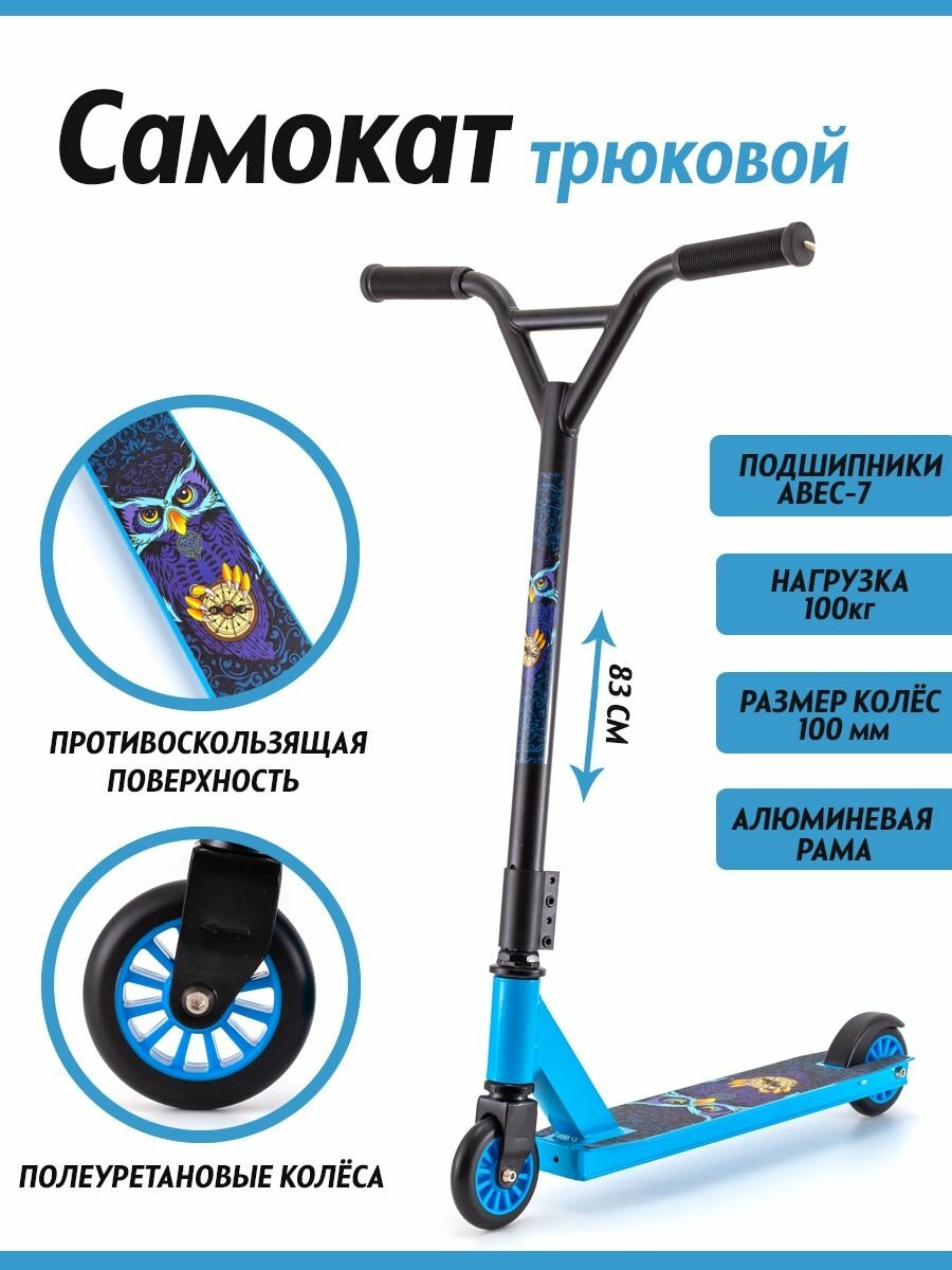 Самокат трюковой, с подшипником abec 7, пластиковые диски, синий информация: