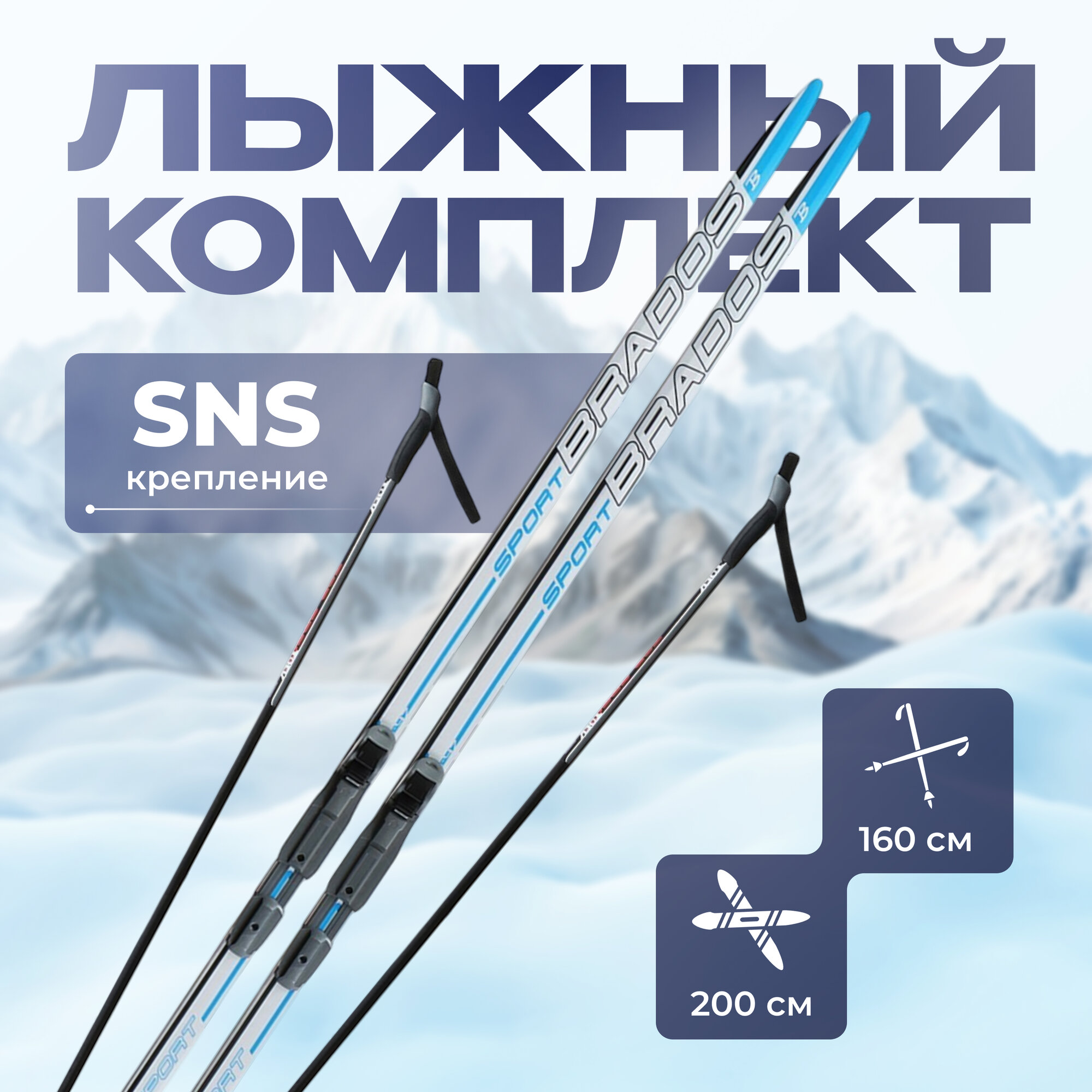 Лыжный комплект STC с креплением NNN c палками 160 WAX Brados LS Blue