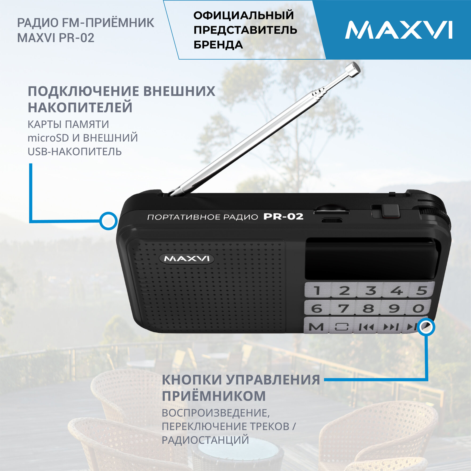 Беспроводной радиоприёмник Maxvi PR-02 black с поддержкой карт и разъёмом для наушников информация: