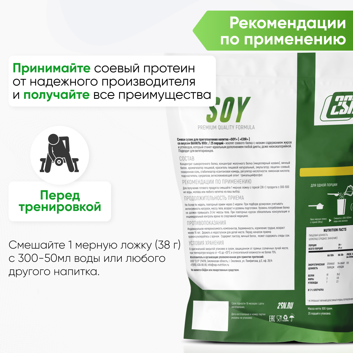 Соевый протеин для набора мышечной массы, 2SN Soy Protein 900g (Черника) информация: