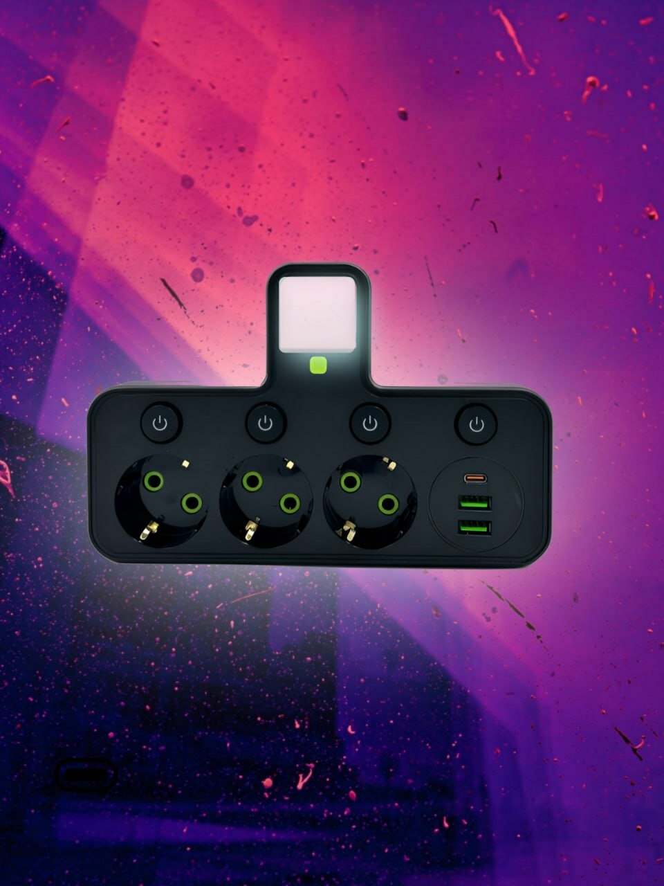 Тройник разветвитель 3 розетки 2 USB + Type-C с подсветкой