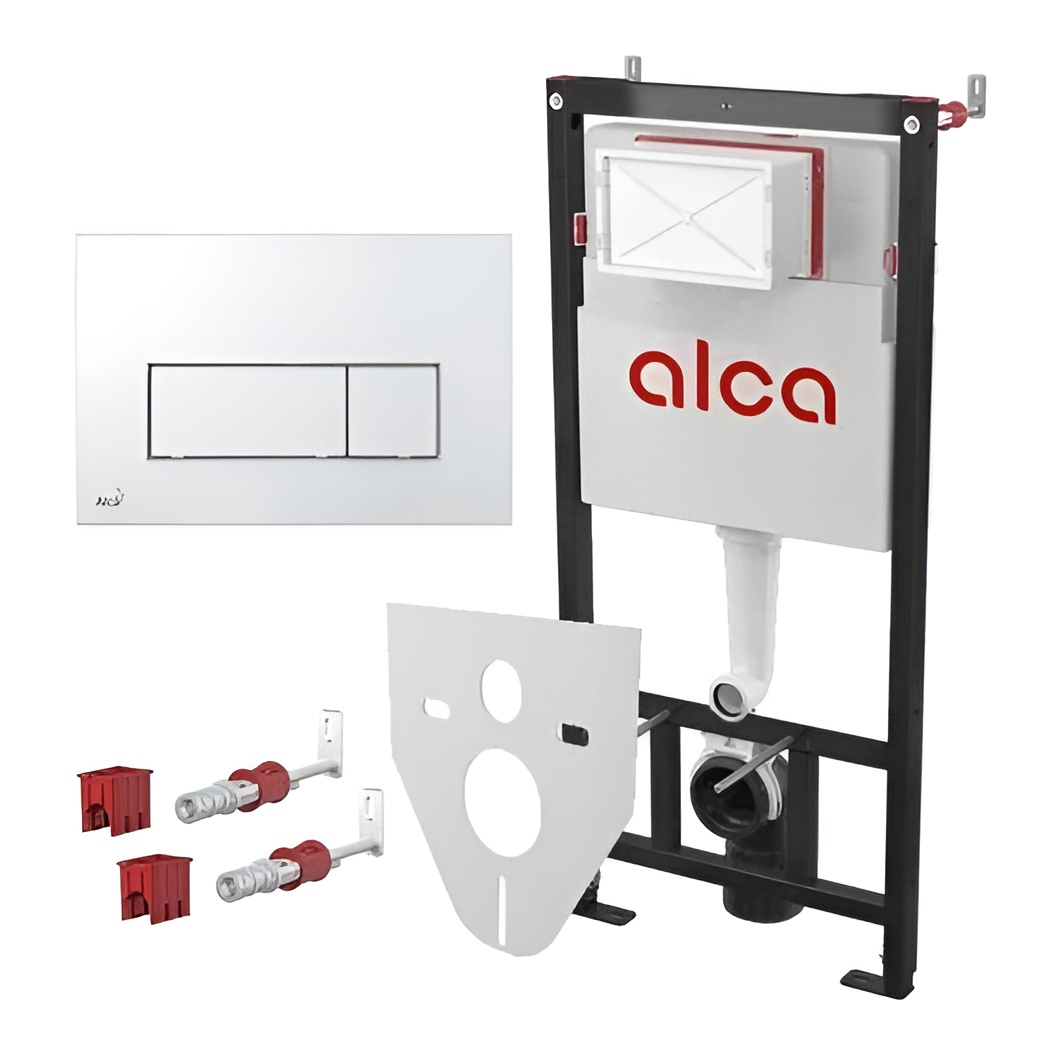 Инсталляция AlcaPlast AM101/1120 4 в 1 для унитаза с кнопкой смыва M670, белый