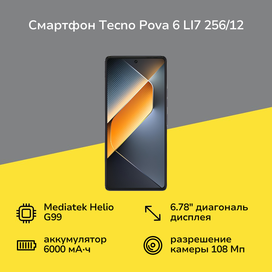 Смартфон Tecno POVA 6 LI7 256/12 Meteorite Grey информация: