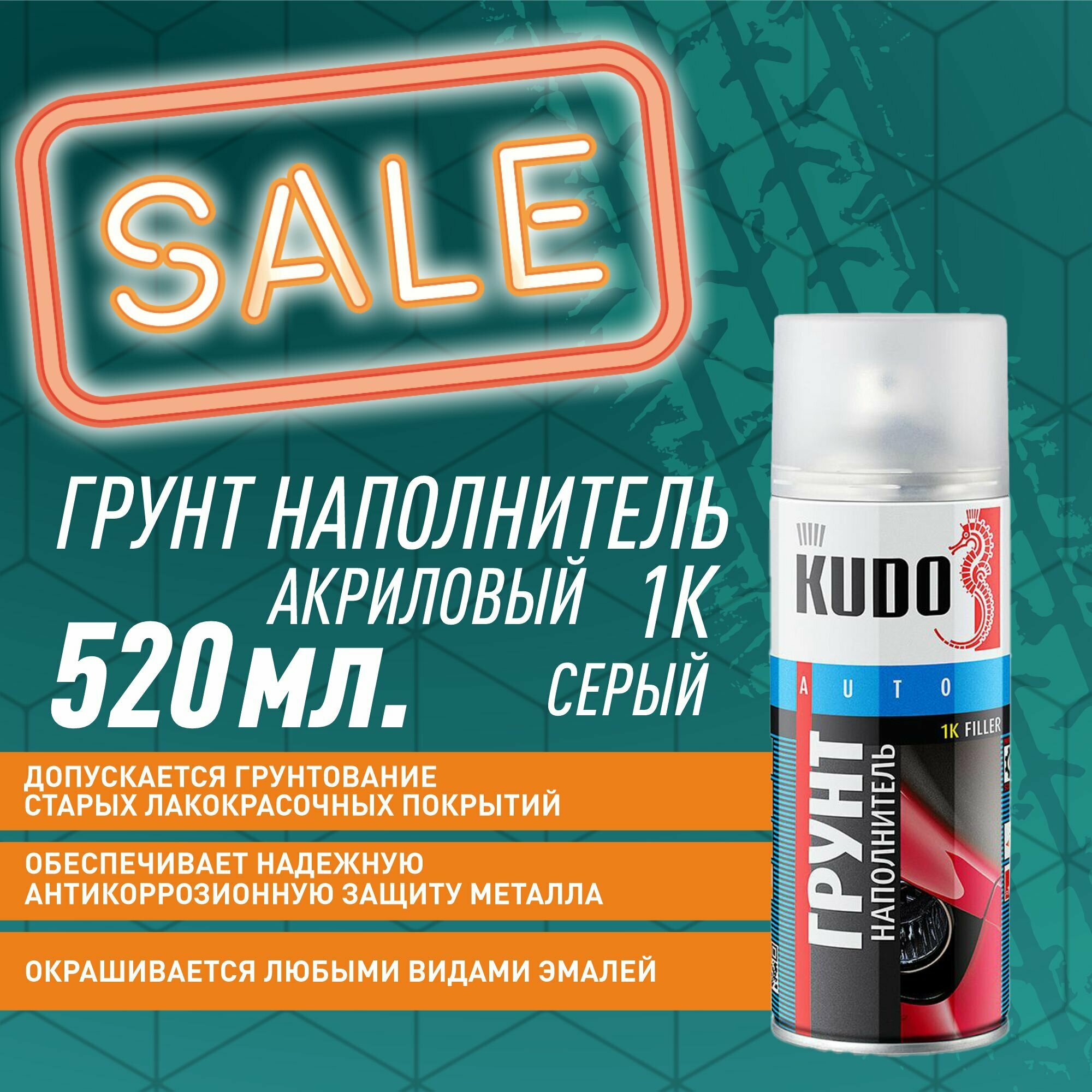 Грунт наполнитель 1К акриловый серый 520мл. KU-2201 KUDO информация: