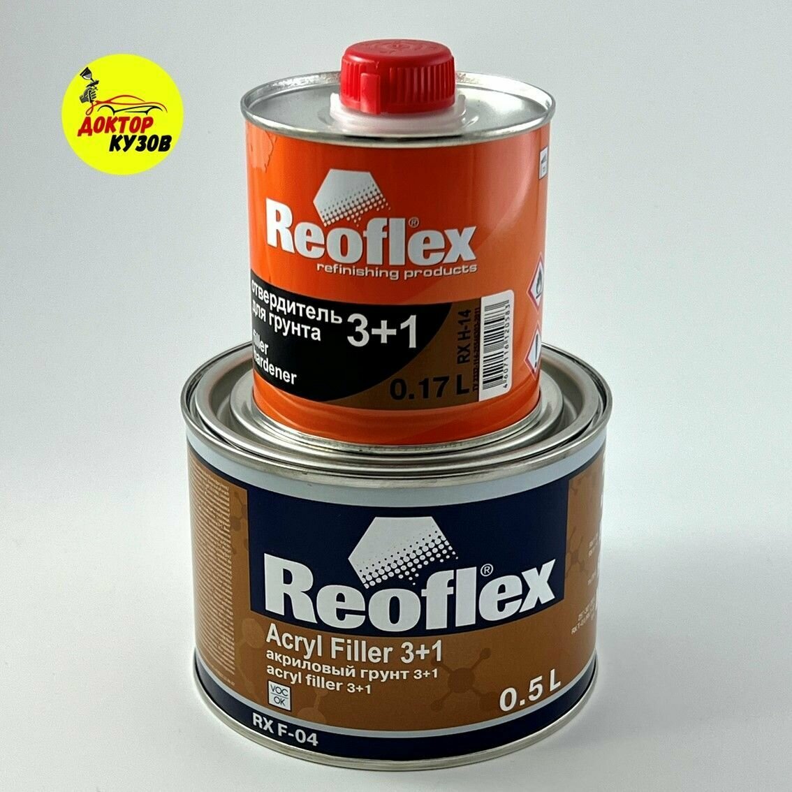 Отзывы на Акриловый грунт для авто Reoflex белый 0,5 л + отвердитель 0,17 л / Двухкомпонентный грунт для автомобиля 3+1 Acryl Filler RX F-04