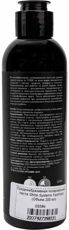Среднеабразивная полировальная паста Shine systems FastPolish информация: