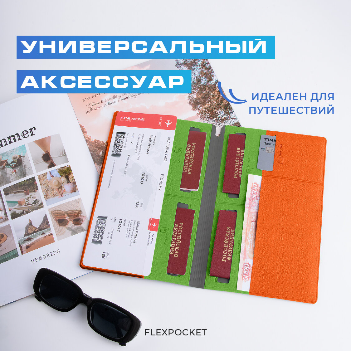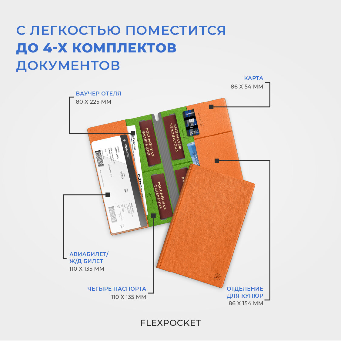 Органайзер для путешествий семейный Flexpocket / Турконверт / Авиахолдер / Папка для документов, загранпаспорта, цвет Оранжевый информация:
