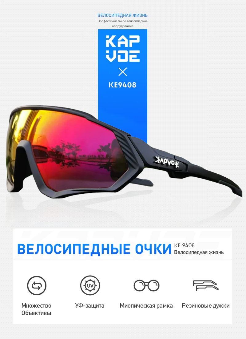 Очки спортивные солнцезащитные для мужчин и женщин Kapvoe для велосипеда, туризма, бега, лыжероллеров, лыж, цвет фиолетовый синий, UV400 2 299 ₽