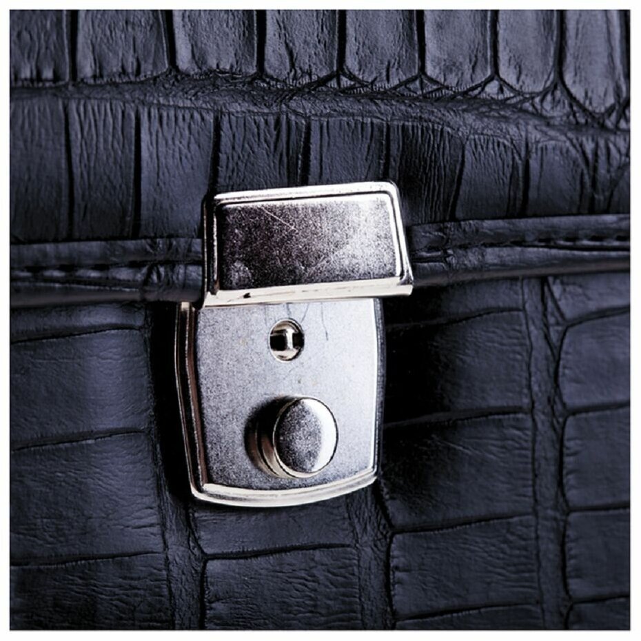 Портфель OfficeSpace "Palermo", кожзам, кайман, черный, 3 отделения, метал. замок, с ремнем информация: