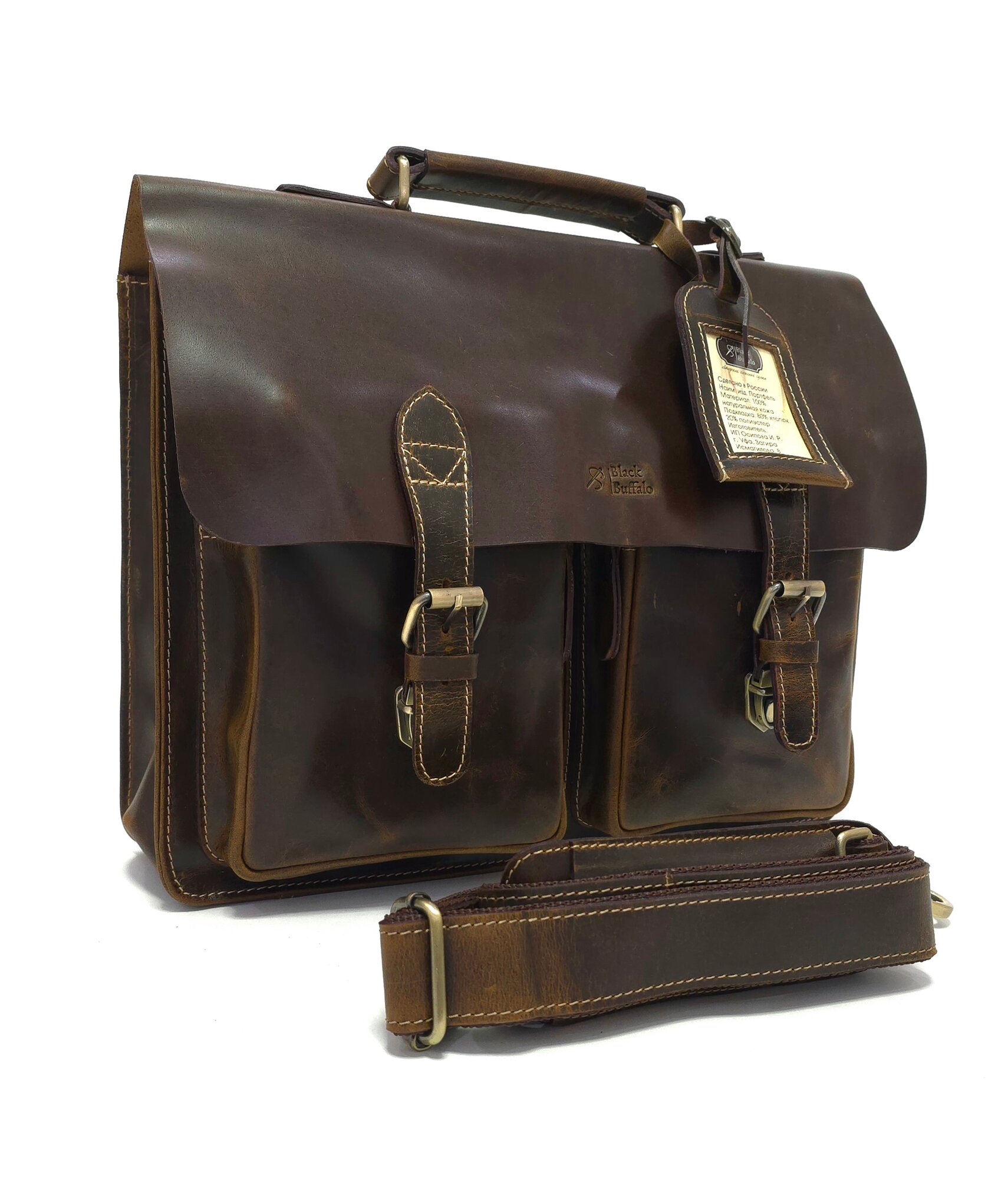 10 цен на Портфель мужской Black Buffalo натуральная кожа, кожаный, ручная кладь, деловая, для ноутбука, документов А4, коричневый
