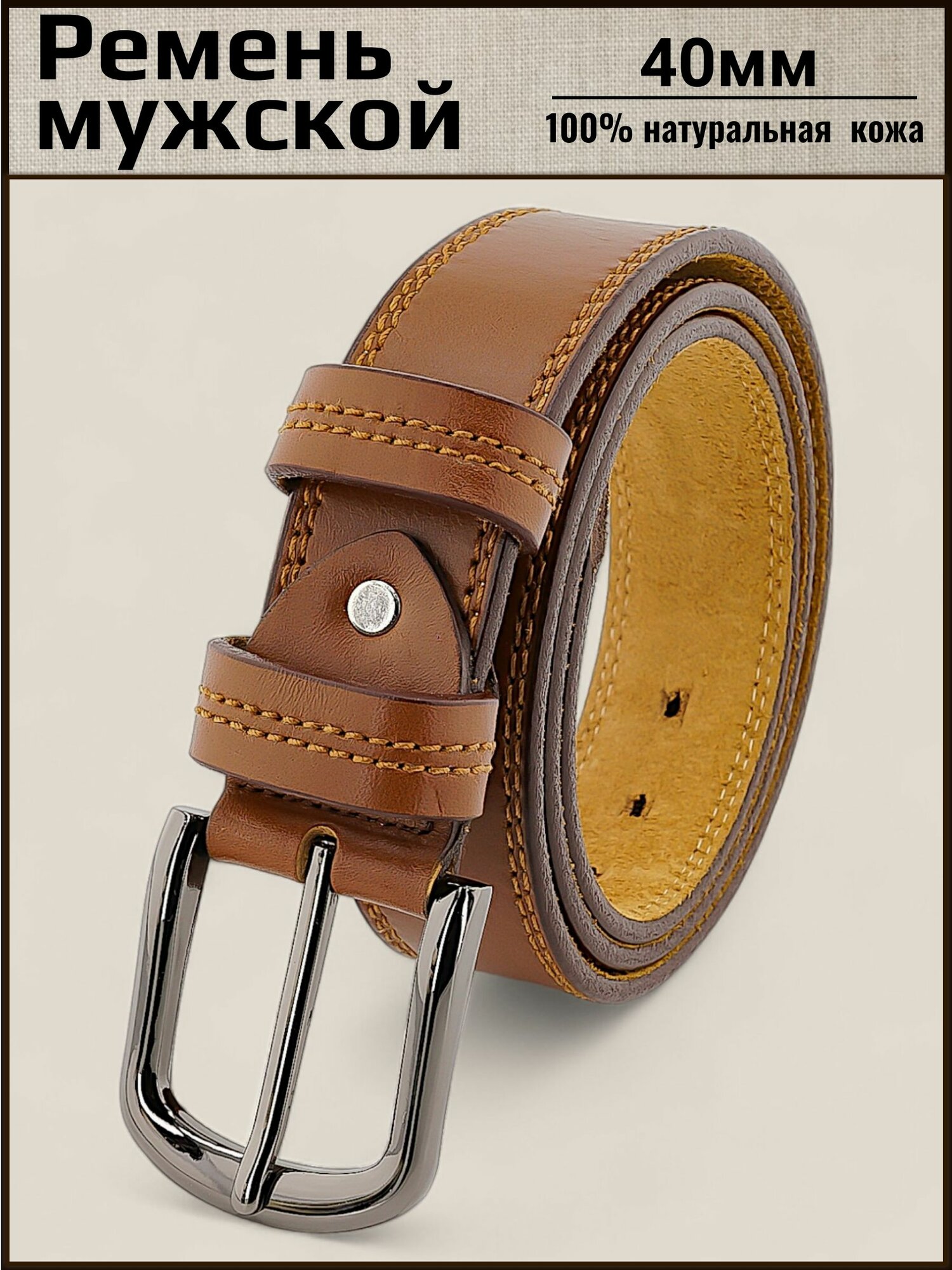 Отзывы на Ремень мужской кожаный Aksy Belt светло-коричневый, 40мм, 2 строчка, Италия, 120 см