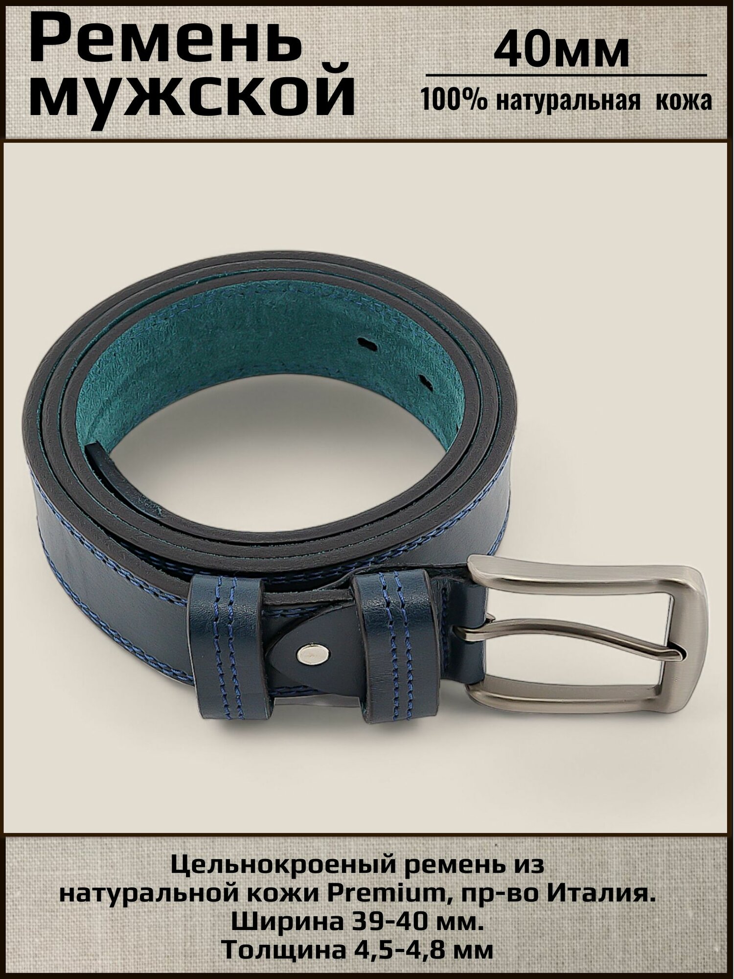 Отзывы на Ремень мужской кожаный AKSY BELT синий, 40мм, прошитый, Италия, 140 см