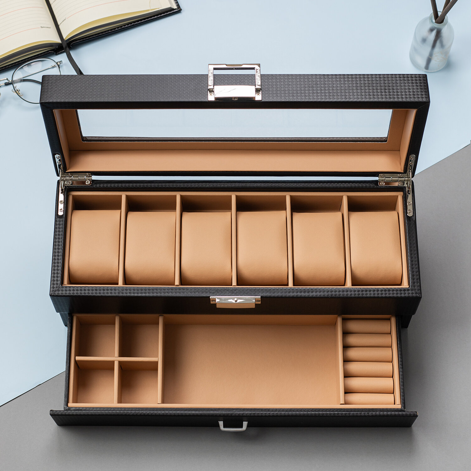 | Особенности | закрывается на замок / отделение для очков / отделение для украшений / стеклянная крышка |