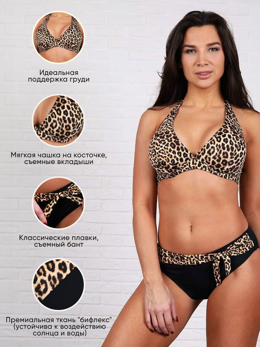 Купальник MollenaLayers с леопардовым принтом, размер 46, коричневый/черный 3 274 ₽