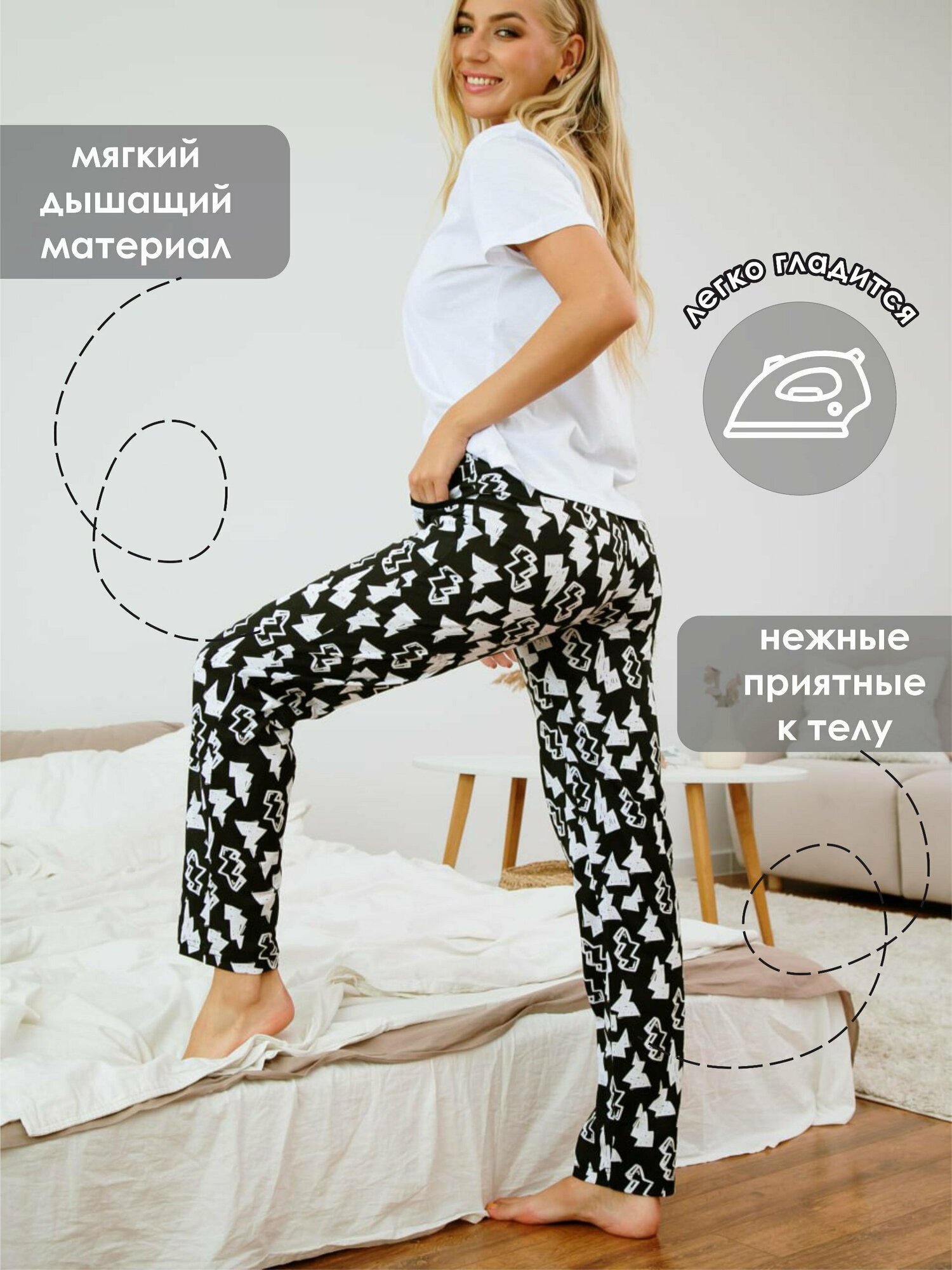 Брюки женские Ohana market/Женские штаны/Для дома/Пижамные брюки/Осенние/ размер 46