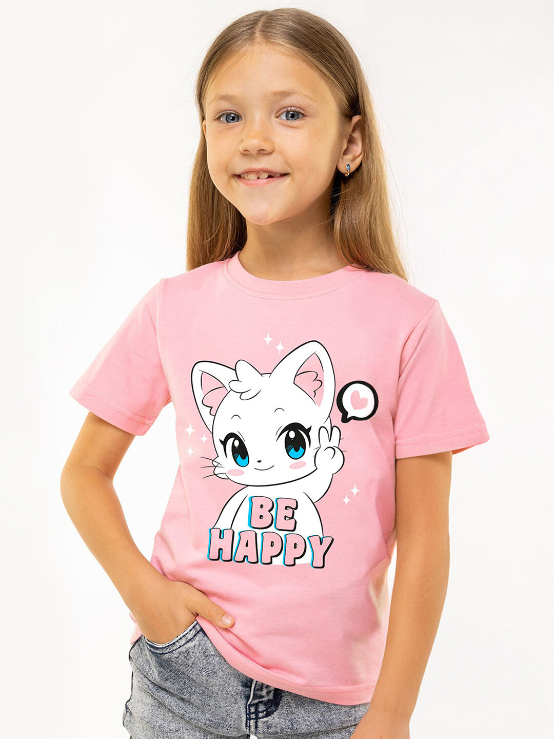 Футболка детская с принтом 100% хлопок HappyFox HF66031D happy.розовый 110 609 ₽
