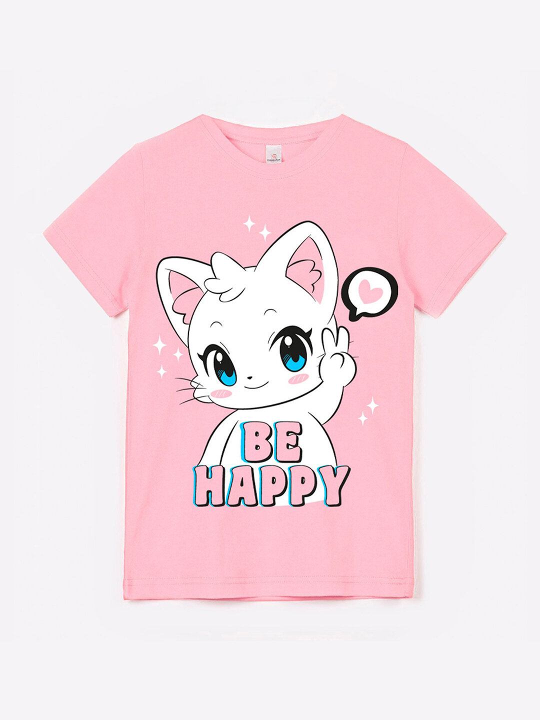 Футболка для девочек и подростков с принтом детская одежда HappyFox, HF66031D размер 122, цвет звездная.кошка.розовый 523 ₽