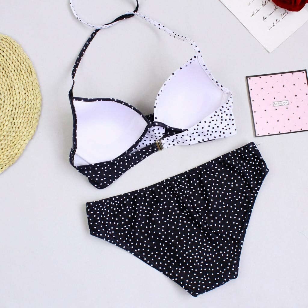 Женский черно-белый раздельный купальник в горошек (Размер: S) (Цвет: черный с белым)