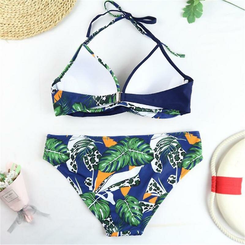 10 цен на Женский раздельный купальник с растительно-анималистическим принтом (Размер: L) (Цвет: синий)