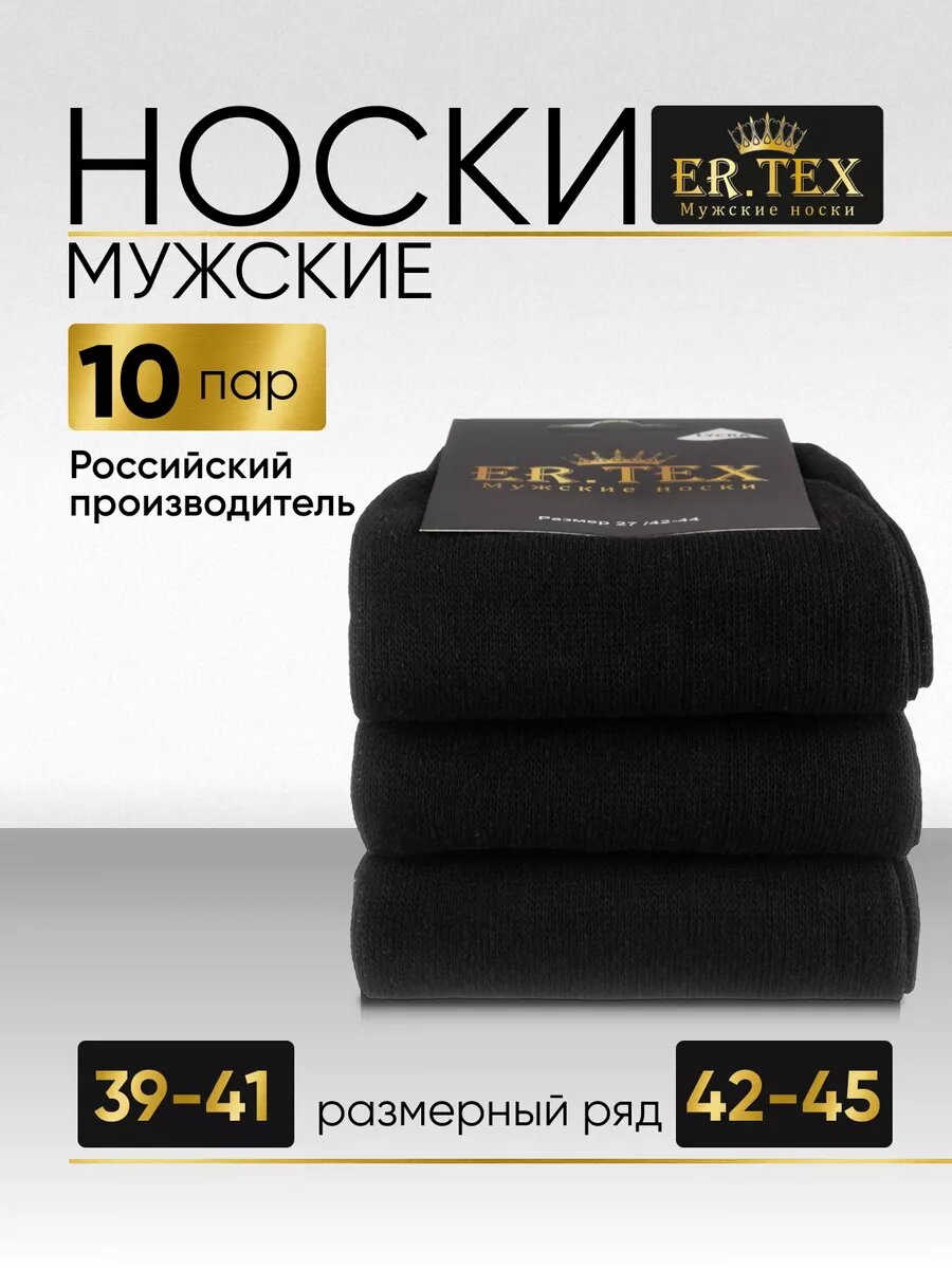 Носки ER.TEX Хлопок, комплект, 10 пар, размер 27 (42-45), черный 634 ₽
